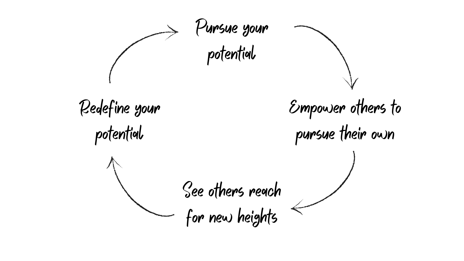 As I am pursuing my full potential, I am driven to empower others to pursue their own, seeing them reach for new heights inspires me to redefine my potential. This becomes a loop that continues to drive me through life.
